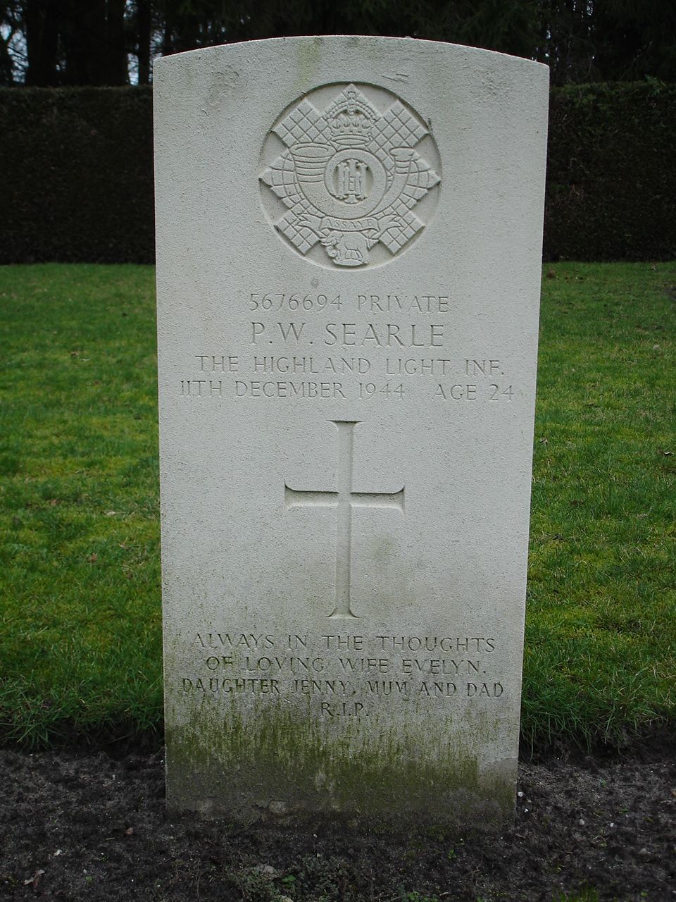 Son of Clifford Perriott Searle and Ella Ann Searle; husband of Evelyn Searle, of Totterdown, Bristol.
